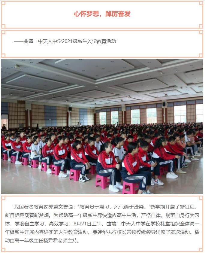 遵校紀(jì)樹(shù)學(xué)風(fēng),構(gòu)建文明天人——曲靖二中天人中學(xué)高一新生入學(xué)教育系列活動(dòng)(二)“誠(chéng)取天地正氣問(wèn)人間暖涼,法引規(guī)矩方圓律世間萬(wàn)象”。為了貫徹立德樹(shù)人的根本任務(wù),踐行曲靖二中天人中學(xué)...