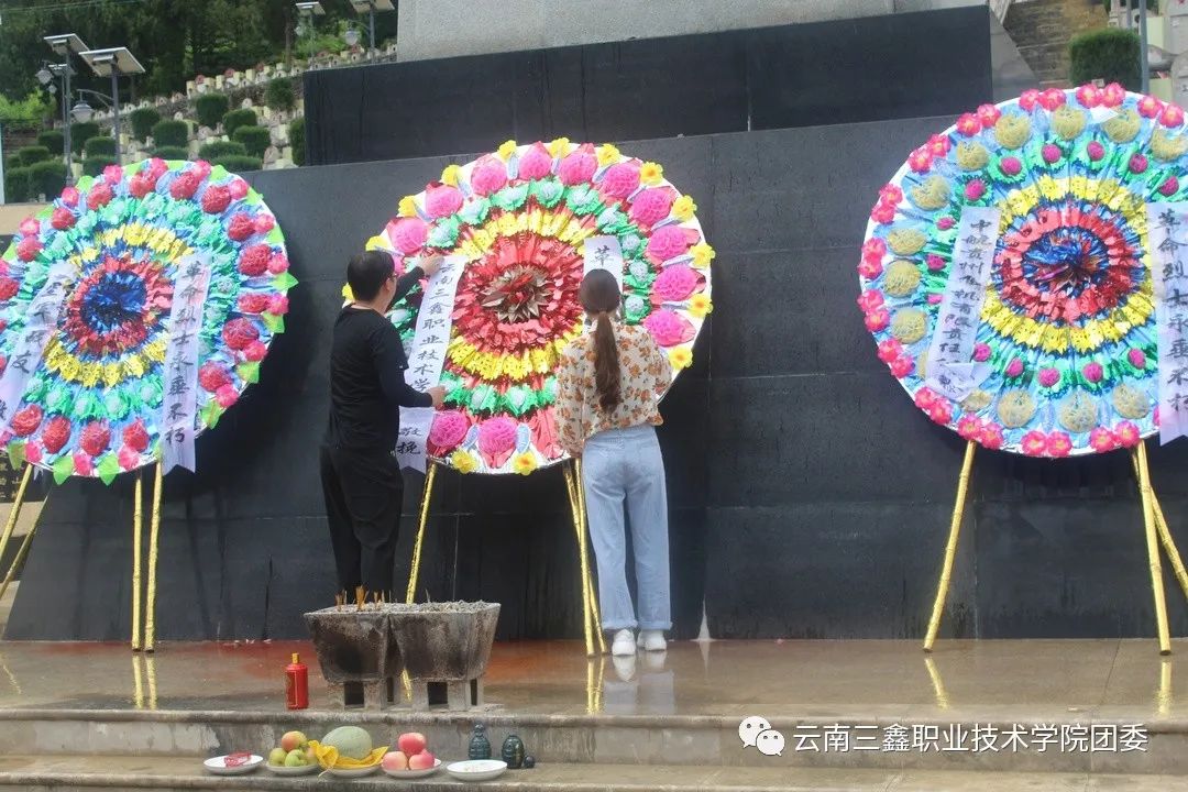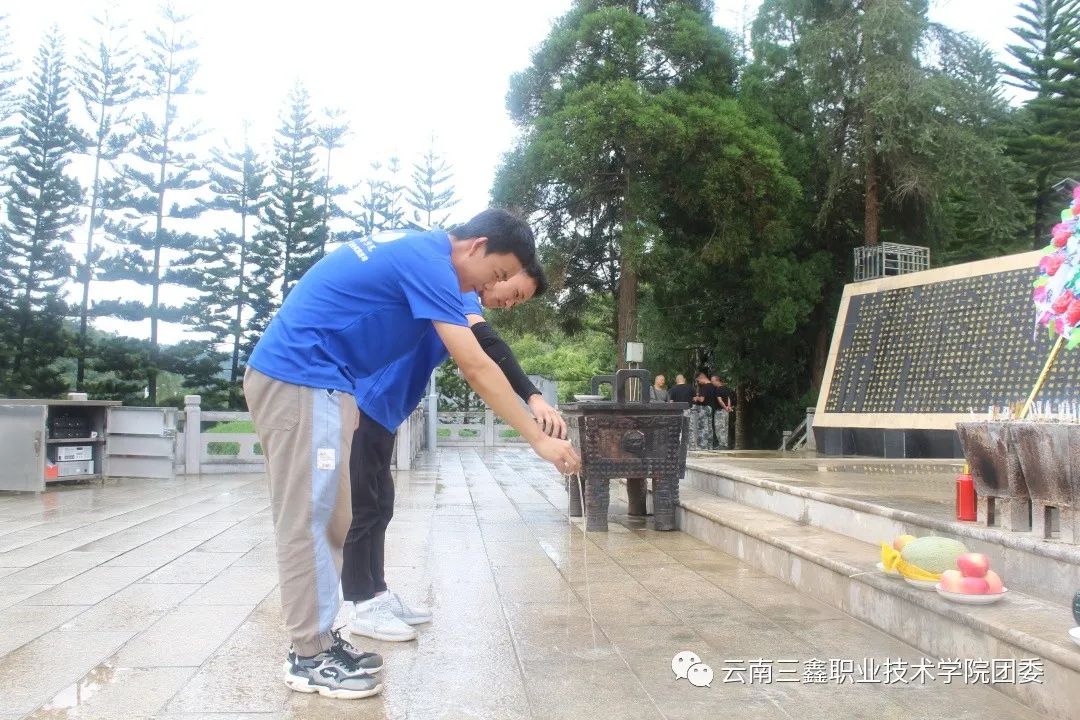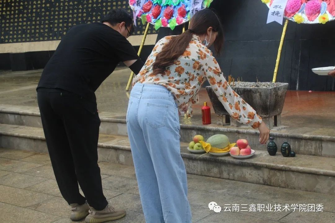 首先由學(xué)院團(tuán)委書(shū)記王家琛老師和李慶妹老師帶領(lǐng)我們向烈士們默哀、獻(xiàn)煙,敬酒。