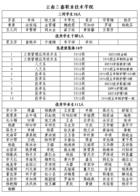 省教育廳關(guān)于表彰2019-2020學(xué)年省級(jí)三好學(xué)生優(yōu)先學(xué)生干部先進(jìn)集體班級(jí)及優(yōu)先畢業(yè)生——三鑫表彰名單
