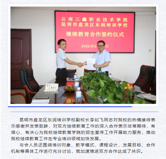 繼續(xù)教育學(xué)院與東潤(rùn)培訓(xùn)學(xué)校舉行合作簽約儀式