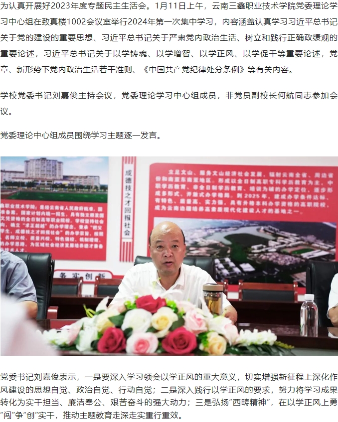 云南三鑫職業(yè)技術(shù)學(xué)院黨委理論學(xué)習(xí)中心組舉行2024年第一次集中學(xué)習(xí)