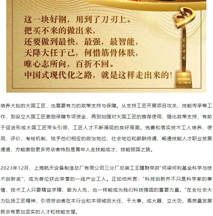 把第一線的大國(guó)工匠一批一批培養(yǎng)出來(lái)