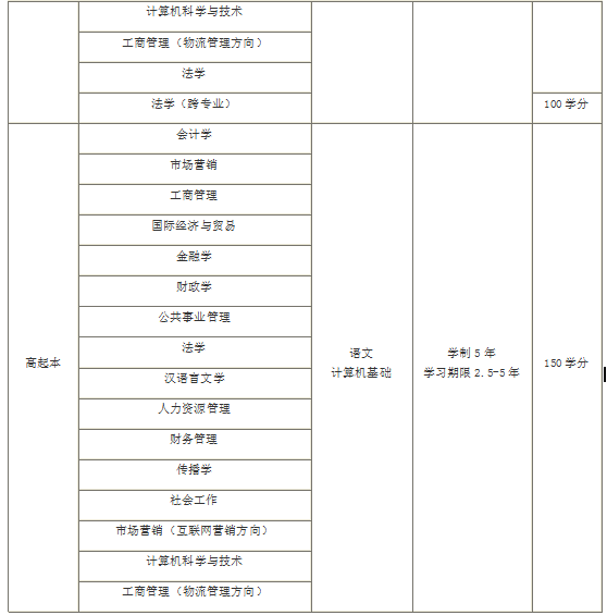 英語類 | 大學(xué)英語(A)、計算機應(yīng)用基礎(chǔ) | ?破瘘c本科教育入學(xué)考試(自主考試或成人高考)科目中沒有“大學(xué)語文”或“高等數(shù)學(xué)”成績的,按不同專業(yè)須加試統(tǒng)考科目“大學(xué)語文(B)”或“高等數(shù)學(xué)(B)”, 加試科目的選擇同高中起點本科學(xué)生的專業(yè)分類。 |